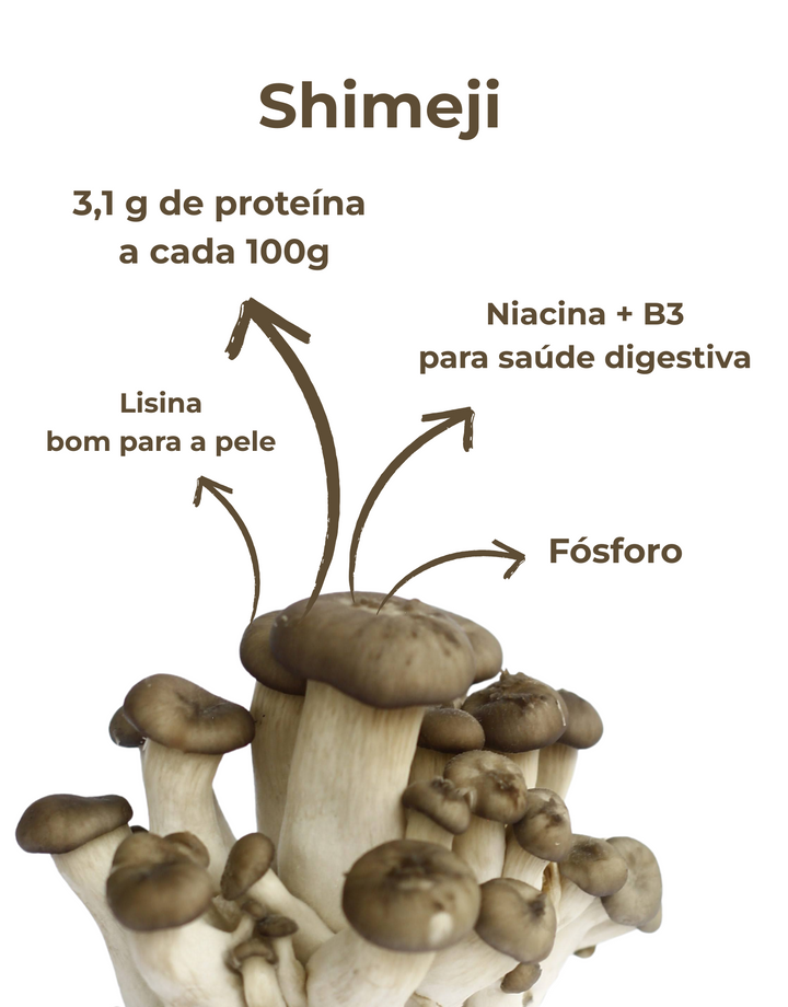 Cogumelo delicado e versátil, muito usado na culinária oriental. Tem sabor suave e textura macia, ideal para refogados rápidos.